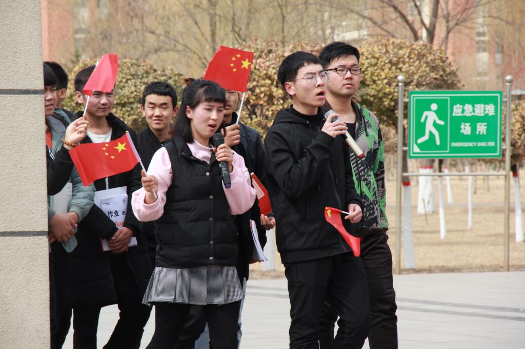 师生们挥舞着国旗,深情的欢唱着,歌声在校园的上空久久回荡......