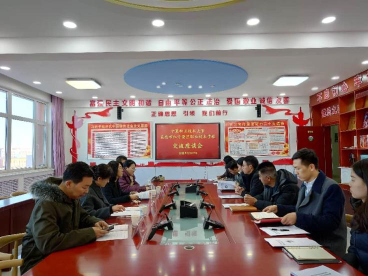 红寺堡区职业技术学校校长彭子建、党支部书记黄奎及相关专业教师热情接待了工作室团队。彭子建校长详细介绍了学校办学成果:该校始终锚定区域经济发展需求,在专业建设、技能人才培养领域成效显著,不仅在全区职业院校技能大赛中屡创佳绩,更多次获评职业教育先进集体,办学实力广受认可。张彩芬教授则围绕工作室核心定位,分享了在专业课程改革、双师团队建设、实训资源开发等方面的实践经验,展现了工作室“以研促教、以教赋能”的工作理念。